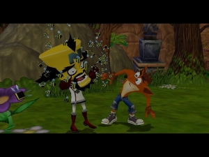 werden wach. Gelegentlich schraubt Crash den Sadismus auch zurück: Wenn Cortex beispielsweise wegen eines Bienenschwarms ausflippt und panisch wie ein Lemming drauflosrennt, muss Crash Versicherung spielen, und ihm den Weg frei machen.