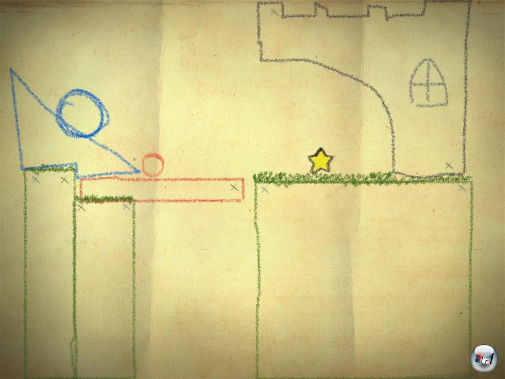 Der letzte Satz ist übrigens wörtlich zu verstehen. Die Spielregeln des innovativen Knoblers sind so simpel, dass sie in einen Satz passen: Zeichne mit der Maus oder dem angeschlossenen Zeichenbrett allerlei zweidimensionale Gegenstände, welche die Kugel zu den Ziel-Sternen befördern. In vielen Levels wartet allerdings nur ein im Comic-Stil wackelndes Sternchen darauf, Bekanntschaft mit meiner Kugel zu machen. So simpel die Aufgabenstellung klingt,