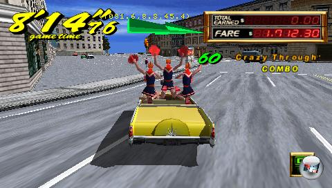 Die Steuerung ist voll auf Arcade getrimmt und auch hier erkennt man die Dreamcast-Wurzeln: Gas und Bremse befinden sich nicht wie üblich auf X und Quadrat, sondern auf den beiden Schultertasten – also genau wie beim Dreamcast-Pad. Auf den Actionknöpfen schaltet ihr zwischen dem Vorwärts- und Rückwärtsgang um. Habt ihr dabei das richtige Timing, legt ihr einen Turbostart hin. Das funktioniert übrigens auch während der Fahrt, wenn ihr zwischendurch einen kleinen Boost benötigt. Während ihr im ersten Teil hauptsächlich aufgrund der vielen Rampen mit eurer Kiste abhebt, habt ihr es im zweiten Teil noch einfacher, denn hier hüpft euer Taxi auf Knopfdruck los, was die Fahrten durch den dichten Verkehr merklich erleichtert. Wurdet ihr dabei früher von fetzigen Rockklängen aus der Feder von Bands wie The Offspring und Bad Religion begleitet, sieht es bei der PSP-Umsetzung anders aus. Genau wie auf dem PC hat man den Soundtrack aus lizenzrechtlichen Gründen ausgetauscht, weshalb die neuen Gitarrenklänge nicht mit den kultigen Tracks der Originale mithalten können. Allerdings habt ihr die Möglichkeit, eigene Soundtracks vom Memory-Stick ins Spiel zu importieren.