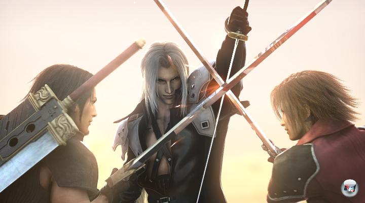 | Auch wenn Zack im Vordergrund steht: Der Konflikt entbrennt zwischen diesen drei Streithähnen: Angeal, Sephiroth und Genesis (v.l.n.r.). |
