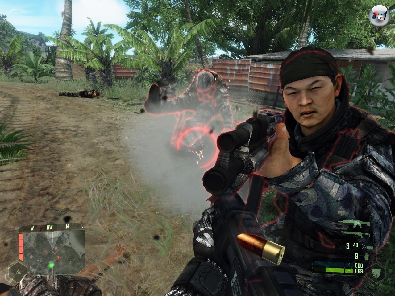mittels Fausthieben abwehren darf, ziemlich nervend. Kurz darauf, etwa nach zehn Stunden, ist Crysis auch schon vorbei, danach bleiben euch noch zwei Möglichkeiten, den Spielspaß zu strecken: Zum einen liegt dem Game erneut ein verhältnismäßig leicht zu bedienender Sandbox-Leveleditor bei, mit dem ihr eigene Inselparadiese erschaffen dürft. Zum anderen wäre da der Mehrspielermodus für bis zu 32 Anzugträger – via LAN oder Internet könnt ihr entweder auf »Instant Action« drücken und das Beste hoffen, oder etwas tiefer ins Detail gehen: Neben dem obligatorischen Deathmatch ist der »Power Struggle«-Modus interessant, in dem zwei Teams im Battlefield-Stil um die Kontrolle über eine Reihe militärischer Einrichtungen kämpfen. Beide Teams beginnen lediglich mit einer Pistole bewaffnet; um weitere Waffen, Fahrzeuge und Nanosuit-Extras zu erhalten, müssen Checkpunkte eingenommen und gehalten, Missionen erfüllt und logischerweise Gegner erledigt werden. Schlussendlich dreht sich dieser Modus darum, die gegnerische Basis mittels Alien- oder Nuklearwaffen einzuäschern, was gut koordiniertes Teamwork erfordert. In jeder Mehrspielervariante könnt ihr Vehikel und die Sonderfunktionen des Nanoanzugs nutzen – da die Levels ziemlich groß sind, ist das auch bitter nötig. Der Multiplayermodus funktioniert gut, läuft schnell und ist stabil, aber bietet nichts aufregend Neues. Gerade angesichts spezialisierter Mehrspielershooter wie Enemy Territory: Quake Wars <a class="DYNLINK" onmouseover="DynToolTipp_Show('Klicken für Gameinfos‚)“ onmouseout=“DynToolTipp_Hide(); “ href=“javascript:DynCont_Display(‚Gamefinder‘,’runmod.php?sid=%7BSID%7D&LAYOUT=dyncont_gf&spielid=7771′)“>, Team Fortress 2 <a class="DYNLINK" onmouseover="DynToolTipp_Show('Klicken für Gameinfos‚)“ onmouseout=“DynToolTipp_Hide(); “ href=“javascript:DynCont_Display(‚Gamefinder‘,’runmod.php?sid=%7BSID%7D&LAYOUT=dyncont_gf&spielid=23′)“> oder Unreal Tournament 3 <a class="DYNLINK" onmouseover="DynToolTipp_Show('Klicken für Gameinfos‚)“ onmouseout=“DynToolTipp_Hide(); “ href=“javascript:DynCont_Display(‚Gamefinder‘,’runmod.php?sid=%7BSID%7D&LAYOUT=dyncont_gf&spielid=7591′)“> dürfte er es ziemlich schwer haben.