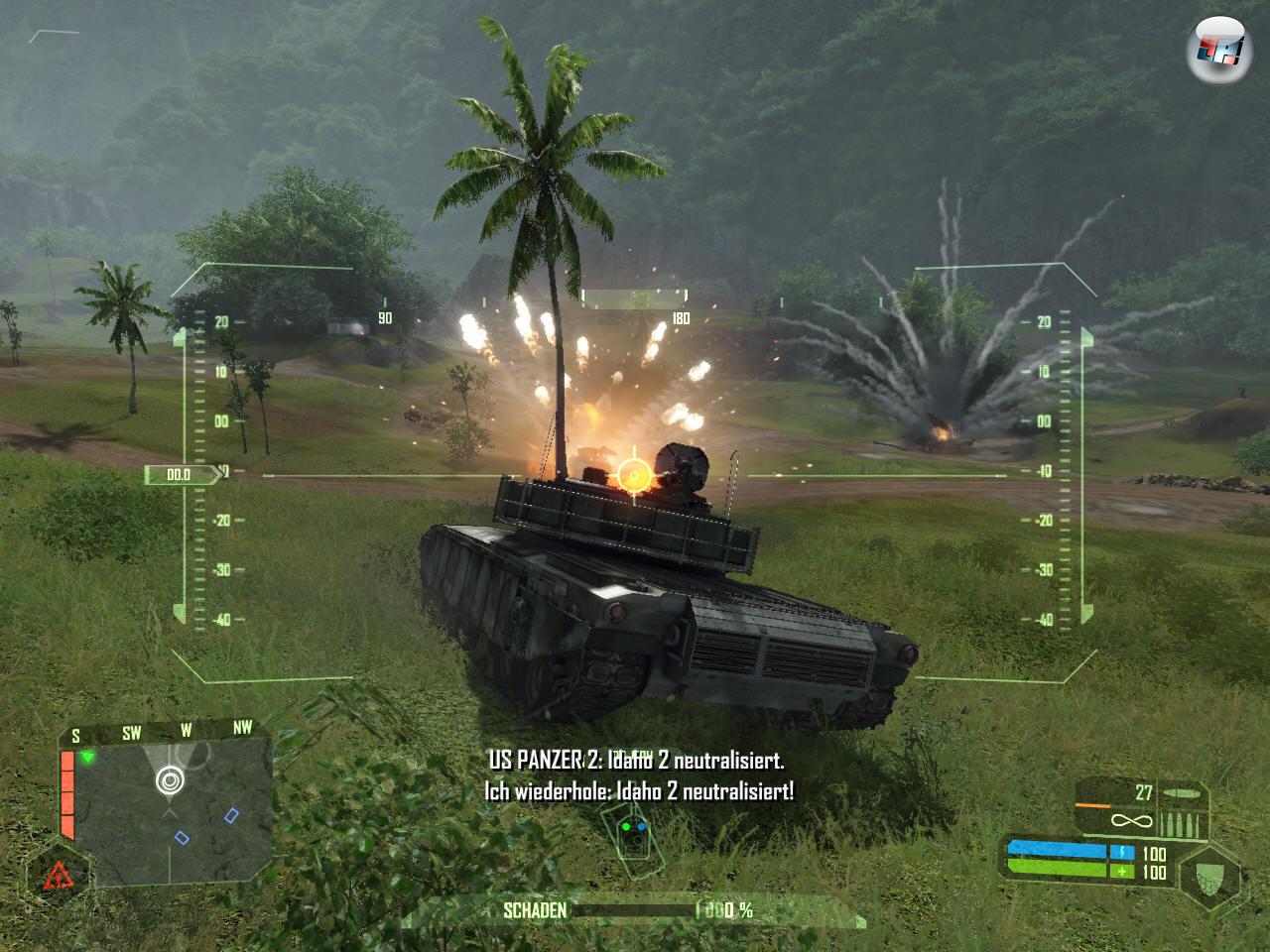 Nanu, Call of Duty? Nein, auch in Crysis dürft ihr in einer aufregenden Schlacht hinter das Steuer eines durchschlagskräftigen Panzers.