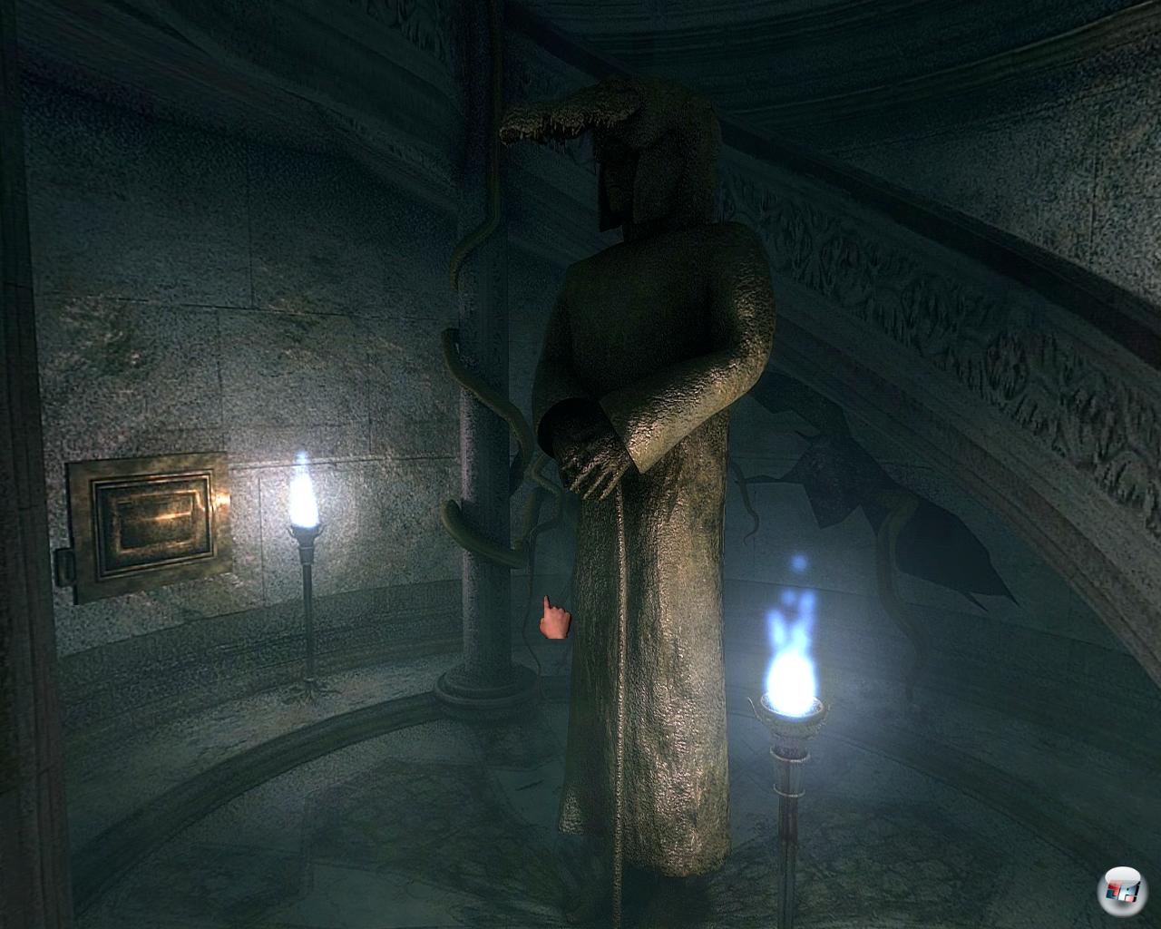 Auch allerhand Kunst und Architekturstile sind mit eingeflossen, so wirken einige vorkommende Statuen ägyptisch andere wieder griechisch oder eher orientalisch. Einige der teuflischen Götterbilder sehen fast lebendig aus, als würden sie sich demnach bewegen. All das ist freilich unbewegte Szenerie, denn lebendige Elemente sind eher selten. Ebenso wie die wenigen filmische Sequenzen, die etwa ablaufen, wenn ihr mir dem Wagen von einem zu nächsten Ort fahrt – da hat man schon bessere Rendervideos gesehen