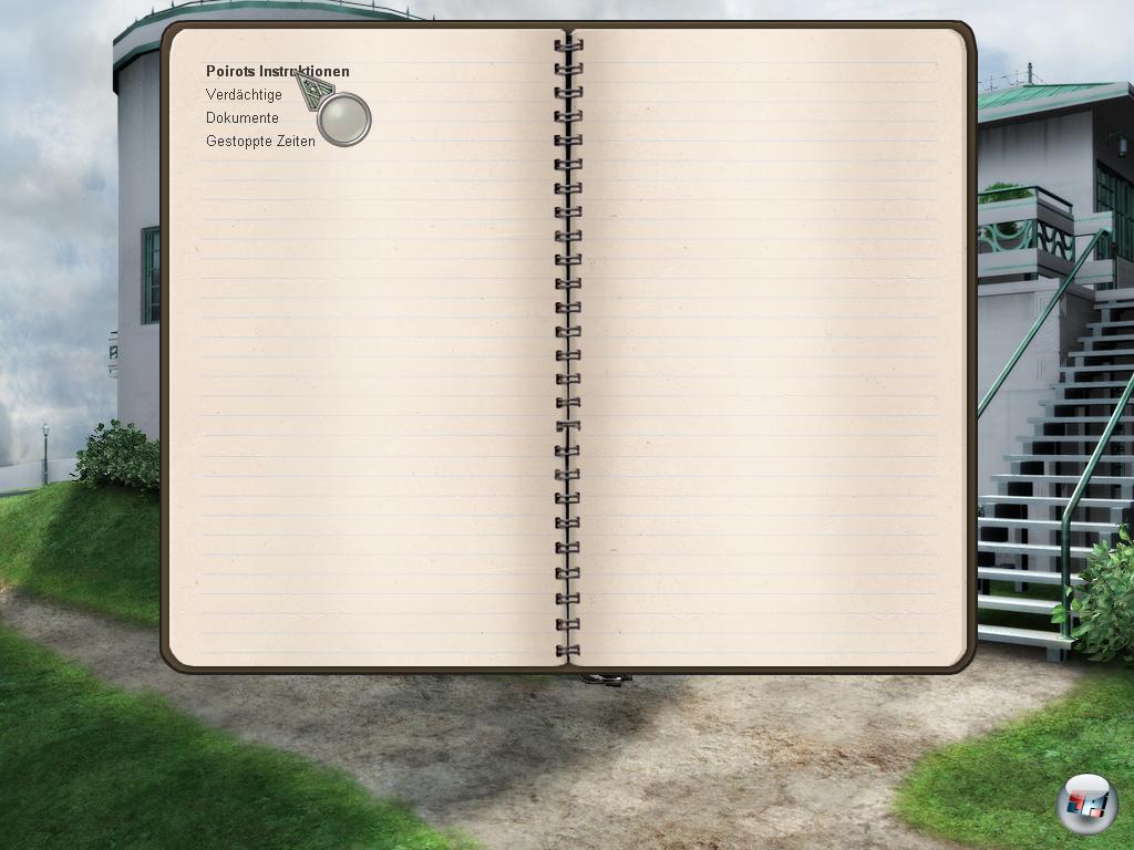 | Das Notizbuch dient euch als Hilfe, um die verwirrenden Eindrücke zu ordnen. Hier werden Verdächtige, gestoppte Zeiten und aktuelle Rätsel notiert. |