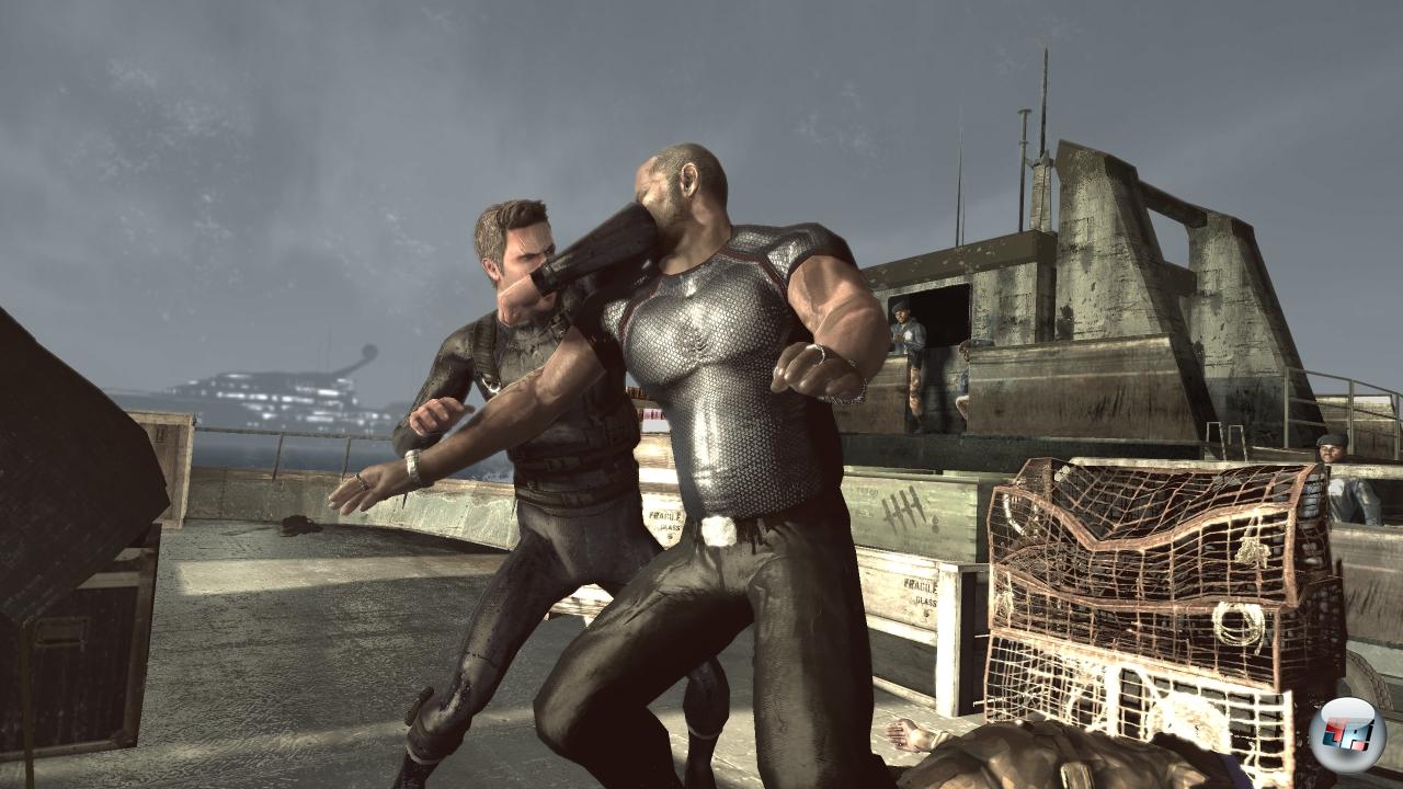 Interessanterweise überlassen euch die Entwickler die Entscheidung, wie groß der Teil des Spiels sein soll, den ihr prügelnd verbringt: Ihr müsst nur nahe genug an einen Gegner rankommen, dann wird automatisch in den Nahkampf geschaltet. Falls ihr darauf, aus welchem Grund auch immer, keine Lust haben solltet, steht es euch auch frei, mit Pistole, MG, Schrotgewehr oder Maschinenpistole für Ruhe im Karton zu sorgen. Ihr könnt maximal zwei Knarren gleichzeitig mit euch herumtragen, eine kleine und eine große, außerdem ist die maximale Menge der gleichzeitig die Taschenverstopfenden Munition sehr begrenzt – Jason Bourne ist nun mal kein Space Marine. Aber das ist auch gut so, denn auch der Waffeneinsatz ist nicht optimal gelöst: Die Kamera steht der Action oft im Weg, die Zielsteuerung fühlt sich schwammig an. Immerhin könnt ihr einen großen Teil der Objekte als Deckung nutzen bzw. zerballern – gerade im Falle explodierender Dinge wie Autos oder Propasgastanks sehr befriedigend. Außerdem lassen sich so Gegner vorzüglich aus der Reserve locken, die sonst ihr Heil in der ständigen Deckung suchen. In solchen Momenten gewinnt der »Bourne-Instinkt« an Bedeutung: Per Druck auf Y (sprich: Dreieck-Taste) wird die Umgebung ausgegraut, nur wichtige Dinge (Gegner, Munitionsnachschub, Boni) leuchten für kurze Zeit wie überdimensionierte Glühwürmchen. Auf dem einfachsten Schwierigkeitsgrad könnt ihr den Instinkt aktivieren, so oft ihr wollt, auf den kniffligeren Varianten kostet der Einsatz wertvolles Adrenalin.