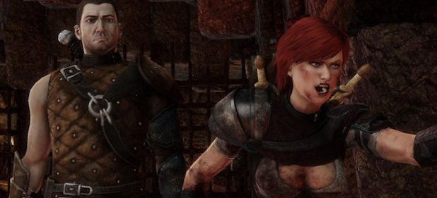 [GUI_PLAYER(ID=108280,width=400,text=Sieht im Trailer düster aus, ist im Spiel unfreiwillig komisch. Schon das Intro kopiert mit seiner Inszenierung der Schlacht so frech und schlecht den Herrn der Ringe, dass einem Übles schwant – das Rollenspiel enttäuscht in nahezu allen Belangen.,align=right)]Wenn man sich Calandra ansieht, zeigt sich die ganze Misere pubertären Storytellings. Der billige Effekt steht einfach immer im Vordergrund. Wie kann man eine Frauenfigur so schlecht, so primitiv designen? Nichts gegen Erotik oder Sex in Rollenspielen – man denke an The Witcher 2 oder Mass Effect 3. Aber hier kann man nur mit dem Kopf schütteln. Man muss mal auf ihre Kleidung achten, denn die Artdesigner haben sich ein besonders kreatives Schnittmuster ausgedacht: Calandra zeigt nicht nur ihre prallen Titten, sie hat auch extra Teile des Stoffes dafür zur Seite geblättert – schließlich will sie in all den Gefechten in Brusthöhe besonders verwundbar sein. Oder sie will all die Kannibalen, Untoten und Hexer geil machen, die im Laufe des linearen Abenteuers in ihre Richtung schlurfen.