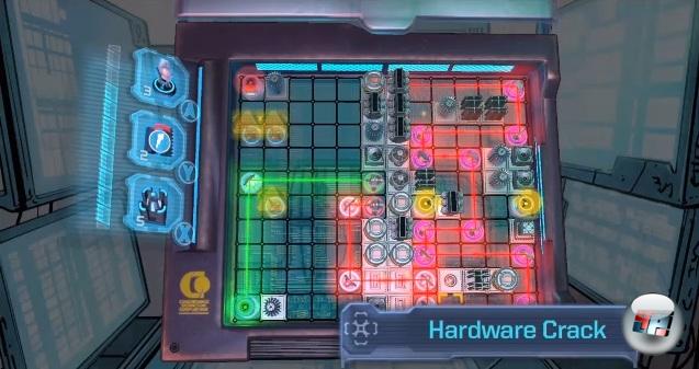 Beim interaktiven Teil wird es leider auch nicht besser, wenn die grottigen Filme von Minispielen unterbrochen werden, von denen es gerade mal drei Variationen gibt: Beim Hacken muss man mit begrenzten Elementen (Spiegeln, Verteilern) verschiedenfarbige Strahlen an ihr Ziel lenken und dabei sogar die Farben mischen – und das alles unter Zeitdruck. Während hier mehr Köpfchenarbeit gefordert ist, sind beim Routenverfolgen mehr die guten Reflexe gefragt, denn hier liefert man sich einen Rennen gegen andere Energiepunkte, muss Hindernissen ausweichen und geschickt Verteidigungs-Items wie Blocker platzieren, um als Erster ins Ziel zu kommen. Da die Steuerung relativ träge ist und man ständig irgendwo hängen bleibt, macht sich hier schnell Frust breit. Beim letzten der Minispiele handelt es sich um eine Tower Defense-Variante, bei der man allerdings nur in die Rolle des Angrifers schlüpft, um ein System mit Virenzellen lahmzulegen, die man per Knopfdruck aussendet. Da es keine Ressourcenbegrenzung gibt, führt simples Buttonmashing hier meist