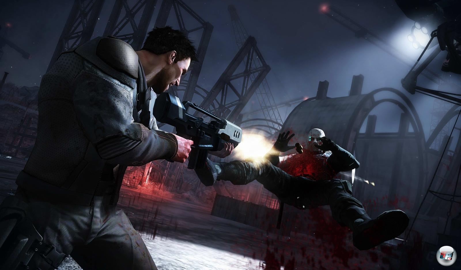 Gegner pulverisiert wird und nur ein paar zinnoberfarbene Flecken auf der Innenseite des Bildschirms zurückbleiben. Und natürlich die zwei Schüsse in die Kniescheibe, gefolgt von einem Schlag mit dem Waffenknauf, der den Gegner in die Luft katapultiert, wo er dann mit ein paar weiteren Geschossen bedacht wird, die Jack mit Wut verzerrtem Gesicht abfeuert. Auch bei Shadows Nahkampf- und Schleich-Angreifen spielt vollkommen überzeichnete Gewalt eine erhebliche Rolle.