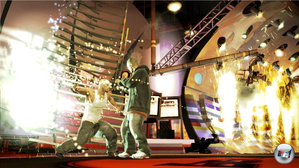 In jedem Abschnitt gibt es Hot Spots, die teilweise aktiviert werden müssen, teilweise automatisch passgenau zu den Beats ins Geschehen eingreifen. Das können z.B. Zapfsäulen einer Tankstelle sein, die bei einem Monster-Bass-Beat explodieren und den Gegner in Mitleidenschaft ziehen. Oder eine gigantische Lautsprecherwand in einer Disco, die allen in der Nähe befindlichen HipHoppern (euch inklusive) eine enorme Druckwelle entgegen schickt – natürlich immer im Rhythmus der Musik. Oder aber ein Fernsehstudio, in der Kameras und Lichtbalken passend zum Beat automatisch angreifen und alle wegschleudern, die das Pech haben, im Weg zu stehen (oder in den Weg geworfen worden zu sein, hehe).