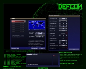 Defcon macht das Anlegen einer Partie denkbar einfach: Klickt auf New Game (es gibt leider keine deutschen Texte) und schon könnt ihr neben der Anzahl der Spieler auch regeln, wie viele Gebiete jeder Teilnehmer übernehmen soll, wie lange das Spiel höchstens dauern wird, ob die Territorien zufällig verteilt werden oder wie viele Städte und Einwohner es dort gibt. Ihr könnt auch Beobachter zulassen, die eure Partie teilnahmslos unter die Lupe nehmen. Je nach Einstellung dürfen sie dabei nicht mit den kriegsführenden Parteien chatten – wobei es mir in zwei Wochen nie passiert ist, dass ein Beobachter Hinweise auf die Stellungen gegnerischer Einheiten gibt. Nicht zuletzt müsst ihr euch für eine von sechs Spiel-Varianten entscheiden: Office Mode erlaubt keine Zeitbeschleunigung und endet nach maximal sechs Stunden (ideal für einen Arbeitstag im Büro), wohingegen Speed Defcon im maximalen Zeitraffer abläuft. Letzteres empfehle ich nur versierten Schnellklickern, denn für Normalsterbliche ist sinnvolles Taktieren hier kaum möglich. Entscheidet ihr euch für Diplomacy, seid ihr zu Beginn