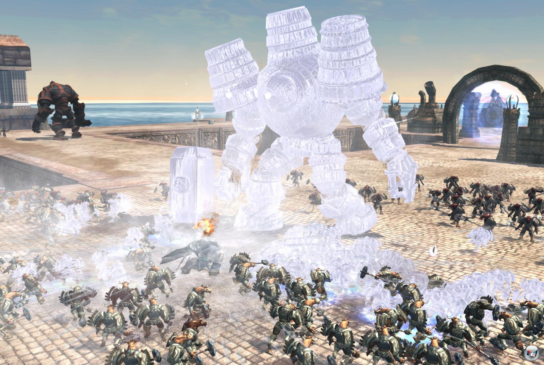 Als wenn die Fertigkeiten der Kämpfer und die in den Läden verfügbaren Gegenstände die Partien nicht schon komplex und hektisch genug machen würden, nein, ihr könnt in eurer Zitadelle die Armeen des Lichts bzw. der Dunkelheit aufwerten. Euer Hauptquartier kann mit einer dickeren Panzerung versehen werden und die Stärke der Verteidigungstürme sowie die Goldausbeute der Zitadellenmine lassen sich verbessern. Creeps d