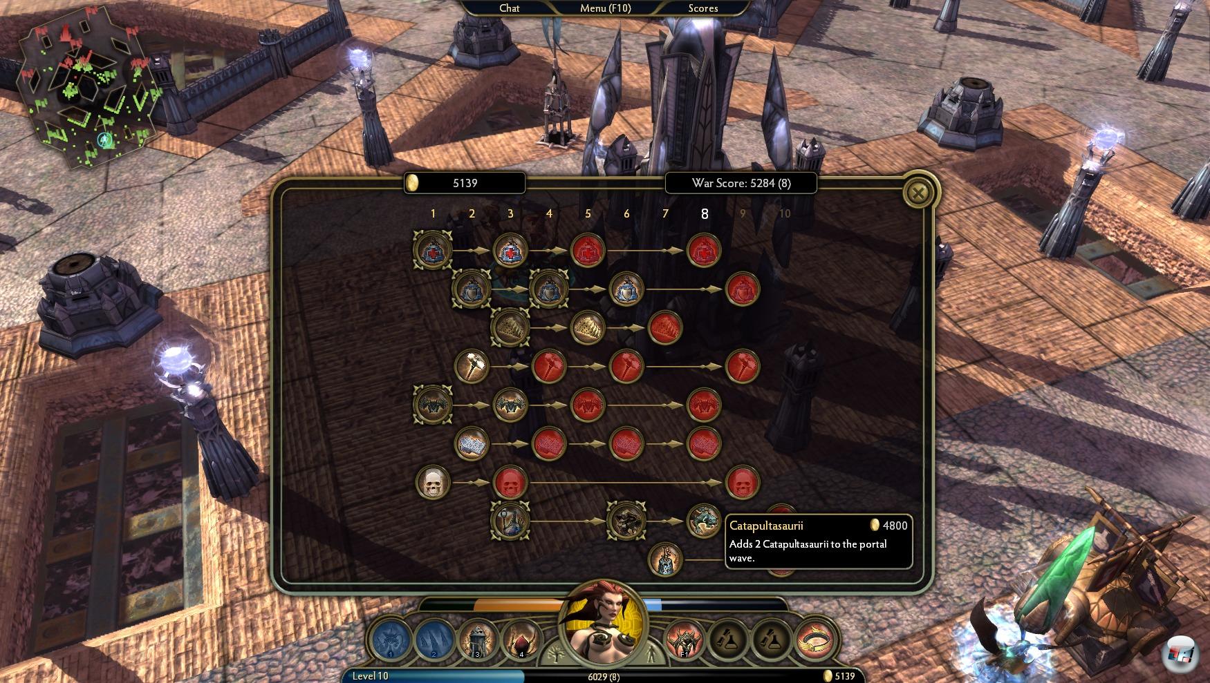 | Mit diesem „Fertigkeitsbaum“ wird die Zitadelle ausgebaut und zwei Katapulte zur nächsten Portalwelle hinzugefügt. |