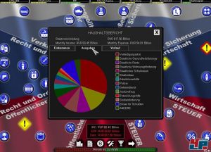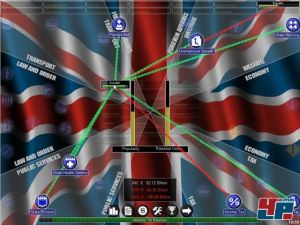 Dass Äußerlichkeiten bei komplexen Strategiespielen in den Hintergrund treten, ist inzwischen fast schon so etwas wie eine Binsenweisheit. Allerdings hat Demokratie! wieder mal den all zu nüchternen Charme einer Tabellenkalkulation mit seinen unbewegten Menüs, kahlen Schaltflächen und kalten Statistiken. Eine Flagge im Hintergrund dient da fast als einziger Schmuck. Hier hätten die Entwickler noch viel mehr machen können. Viel wichtiger ist jedoch, dass alles sinnvoll optisch verknüpft wurde, so dass ihr mit einem Blick sehen könnt, woran ein bestimmter Problemkreis krankt. Ein roter Strich symbolisiert einen negativen Einfluss und ein grüner einen positiven. Ganz ähnlich ist es mit den einzelnen Gruppen, die durch eine bestimmte Politik positiv oder negativ beeinflusst werden. Verschiebt ihr einen Regler etwa für die Verteidigungsausgaben könnt ihr gleich sehen, wer das gut findet und wer was dagegen hat. So lässt sich eine Gruppe gezielt fördern.