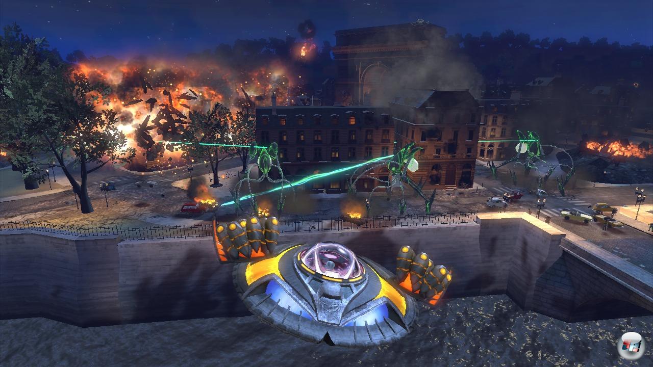 | In den fünf offenen Gebieten könnt ihr auch mit einem UFO für Zerstörung und Panik unter der Bevölkerung sorgen. Leider macht dies das Spiel nicht besser… |