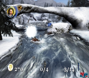 Dazu kommen einzelne Abschnitte, die um ein Vielfaches anspruchsvoller sind als der Rest des Spiels sowie eine mitunter zu weit vom Geschehen entfernte Kamera, was der Motivation einen spürbaren Dämpfer verpasst. Einsteiger sollten sich die Reise nach Narnia deshalb zweimal überlegen, Profis stehen hingegen nach etwa zehn Stunden vor der Weißen Hexe.Im Gegenzug sind die Auseinandersetzungen mit den Zwischengegnern hervorragend inszeniert: Cineasten freuen sich über den teilweise geskripteten Ablauf, Gamer begeistert die Mixtur aus reinem „Auf sie mit Gebrüll!“ und dem Drücken der richtigen Buttons an den richtigen Stellen. Für Auszeiten vom kämpferischen Alltag sorgen übrigens Sequenzen, in denen ihr auf Eisschollen einen reißenden Strom entlang fahrt oder euch mit Lucy oder Edmund vorsichtig über brüchiges Eis tastet. Alles in allem ist „Die Chroniken von Narna“ einer der abwechslungsreichsten Titel dieser Tage, der noch dazu wunderbar schnell zu begreifen ist. Ihr werdet sanft in die einfache Steuerung eingeführt und bekommt später stets gezeigt, welchen Button ihr wo drücken müsst. Wie inzwischen üblich müsst ihr übrigens nur einen zweiten Controller an die Konsole anschließen und schon könnt ihr gemeinsam mit Freund oder Freundin in die Fantasywelt abzutauchen. Schwieriger wird es dabei nicht: Die Gegner sind so zahlreich wie im Solospiel und lassen sich im Duett damit einfacher plätten als allein.