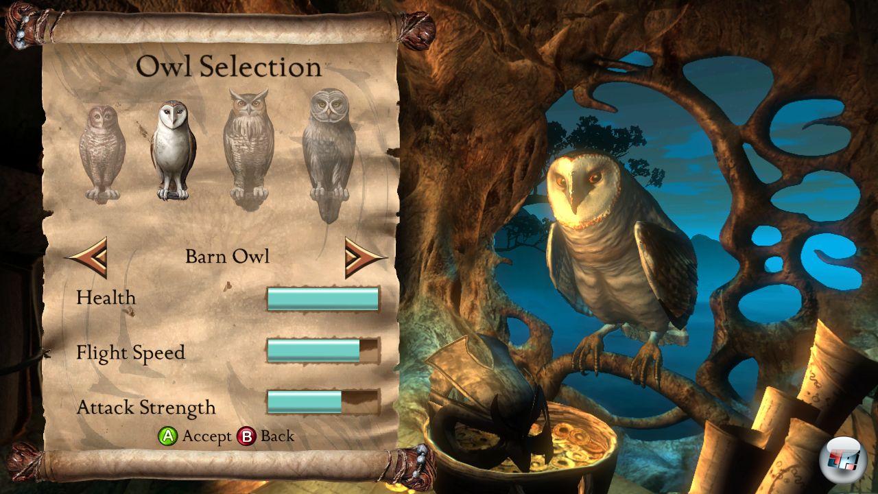 Bevor man mit Eulenwaise Shard und den Wächtern gegen die Reinen in die Schlacht um Ga’Hoole zieht, muss man sich für eine von vier Eulengattungen entscheiden: Als Fleckenkauz ist Shard besonders schnell, als Schleiereule sehr robust, als Bartkauz ungemein stark und als Uhu relativ ausgeglichen. Später kann man sich mit gesammelten Münzen auch noch verschiedene Flugpanzer überstülpen, die Angriffs- und Abwehrkraft stärken sowie einen Bonus auf Gesundheitsregeneration, Temposchub und fliegerisches Können gewähren.