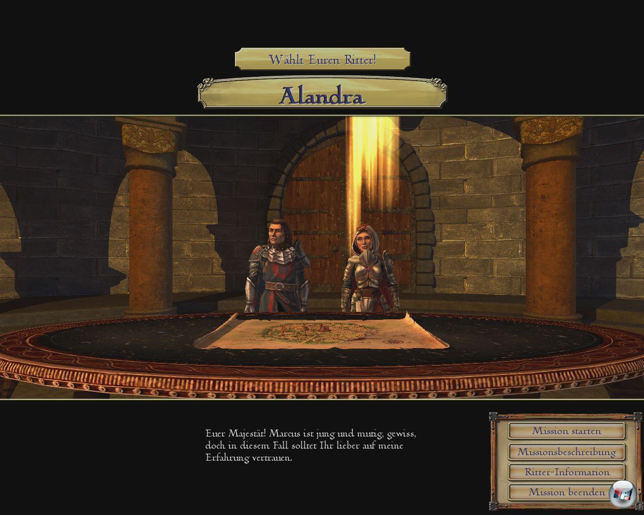 Kulisse, Komfort und Einsteigerfreundlichkeit stehen dann der fehlenden Komplexität gegenüber, die ein Anno 1701 <a class="DYNLINK" onmouseover="DynToolTipp_Show('Klicken für Gameinfos‚)“ onmouseout=“DynToolTipp_Hide(); “ href=“javascript:DynCont_Display(‚Gamefinder‘,’runmod.php?sid=%7BSID%7D&LAYOUT=dyncont_gf&spielid=5973′)“> so auszeichnet – das erschreckend schmale Handbüchlein ist ein erstes Symbol dafür. Trotzdem macht diese Aufbaukarriere Spaß und gerade in den ersten Stunden kann man sich kaum davon losreißen. Entscheidet man sich für den Skalden, darf man seinen Gesängen am Marktplatz lauschen! Entscheidet man sich für den Händler, kann man hungrige Bewohner füttern! Gerade diese Ritter mit ihrer aktiven und passiven Fähigkeit laden zum Experimentieren ein. Sie sind nicht so mächtig wie im Vorgänger, aber können die ein oder andere Situation besser lösen und dabei aufsteigen – das war eine notwendige und gute Designentscheidung, denn jetzt können sie nur mit guter Unterstützung in den Kampf ziehen und wirken nicht wie Supermänner.