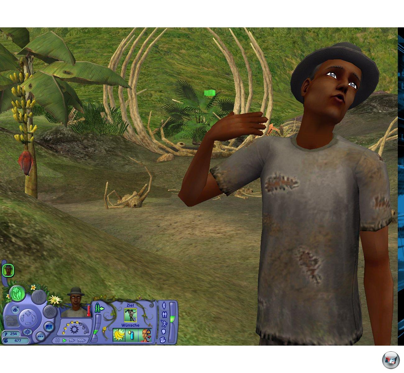 Nun ist es an euch, euren Sim bei Laune zu halten, indem ihr in Serien-Tradition seine Bedürfnisse befriedigt. Lasst ihn schwimmen, damit er nicht müffelt, pflückt Kokosnüsse und Papayas von den herumstehenden Bäumen und lasst ihn zur Erholung den Sternenhimmel genießen, bevor ihr ihn ins provisorisch eingerichtete Bett schickt. Damit ihr am Laptop nicht all zu viel mit dem Cursor arbeiten müsst, genügt ein einfacher Tastendruck und euer Schützling geht selbstständig schwimmen, in die Büsche oder Essbares suchen.