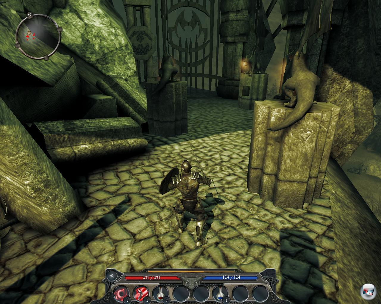 Die Entwicklung des Helden ist einfach gehalten: Es gibt eine Hand voll Werte wie Lebenskraft, Geschicklichkeit oder Intelligenz, die man beeinflussen kann. Bei jedem Levelaufstieg kommen fünf Punkte hinzu, die man frei verteilen kann. Ein Krieger sollte freilich in erster Linie stark sein und lange durchhalten, aber es kann auch nichts schaden, wenn er nicht der Dümmste ist und sich zu bewegen weiß, zumal ein Kämpfer auch Mana für seine Spezialangriffe braucht. So wird man auch belohnt, wenn man die für seinen Charakter untypischen Werte nicht gänzlich vernachlässigt.