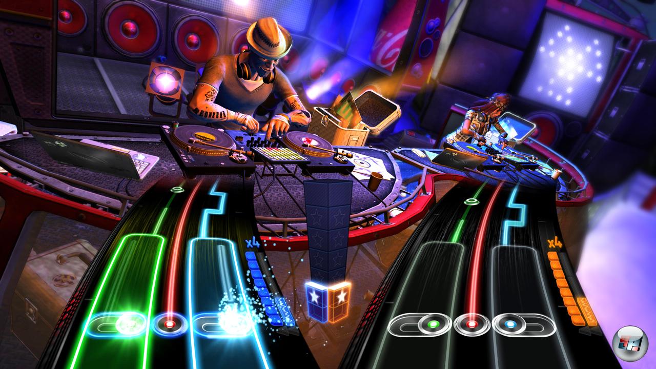 Nach wie vor geht es natürlich darum, sich als DJ am Plattenteller eine möglichst hohe Sternen-Wertung zu verdienen. Dazu müssen zum einen die von oben nach unten rauschenden Noten im richtigen Moment mit einem Klick auf der entsprechenden Taste des Plattentellers aktiviert werden. Zusätzlich kann man an bestimmten Stellen im Track Soundeffekte verändern und muss die Spuren mit dem Crossfader überblenden sowie an bestimmten Markierungen scratchen, wobei auf höheren Schwierigkeitsgraden sogar die Richtung wichtig ist, in die man die Scheibe bewegt. Die Multiplikatoren wie Euphorie und die Funktion, den Track ein wenig zurückzuspulen, um z.B. punkteträchtige Gebiete nochmals abzugrasen, kennt man ebenfalls.