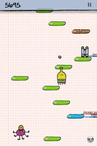 Das Prinzip von Doodle Jump ist schnell erklärt: Lass das skizzierte Rüsselvieh auf dem endlos hohen Notizblock so weit wie möglich nach oben hopsen, bevor es in den Abgrund fällt oder von einem der herumschwirrenden Aliens getroffen wird. Die putzige Hauptfigur springt alleine von erwischten Plattformen ab, wodurch das Bild nach oben scrollt. Mit Hilfe des Bewegungs-Sensors bugsiert man den Rüssler nach links oder rechts; tippt man auf den Bildschirm, ballert er – das war’s! Es geht einzig und allein um den Highscore: Wer den höchsten Punkt erreicht, gewinnt.