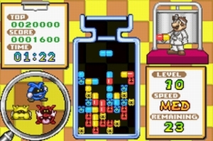 Im Vergleich zum Original gibt es jetzt sowohl mehr fürs Auge als auch für den Zeitvertreib: Optisch bietet das Game in erster Linie putzig animierte Erreger und einen niedlich zappelnden Mario im Arztlook. Ausholender sind da schon die Features: Der klassische Einzelspielermodus bietet 20 Levels, in je drei Schwierigkeitsgrade unterteilt, in denen ihr nur die Viren beseitigen müsst. Ihr dürft allerdings auch gegen den einstellbaren Computergegner antreten oder ein rasantes »Blitz«-Spiel gegen spezielle Viren wagen. Interessanter wird das Ganze natürlich zu zweit: Per Link-Kabel geht’s klassisch oder blitzig gegen einen Freund, dem ihr auch eine Demo schicken könnt. Dr. Mario bezieht seinen Reiz nicht aus der Fassade, sondern aus dem fesselnden Spielprinzip, welches genau wie bei Tetris auf Stress, Chaos und herrliche Hektik setzt – man bekommt natürlich immer im ungünstigsten Moment das falsche Teil zugeschmissen. Freunde des Originals freuen sich außerdem über beschwingte Remixes der bekannten Melodien sowie zwei frische Rhythmen.