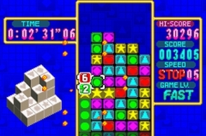 Positionen nebeneinander liegender Teile aus, um so vertikale bzw. horizontale Gruppen mindestens dreier gleichartiger Steine zu bilden, woraufhin sie sich in Wohlgefallen auflösen. Aufgrund des ständig nachwachsenden Steinhaufens könnt und müsst ihr Elemente sorgfältig stapeln, um nicht ein vorzeitiges Game Over zu erleben.