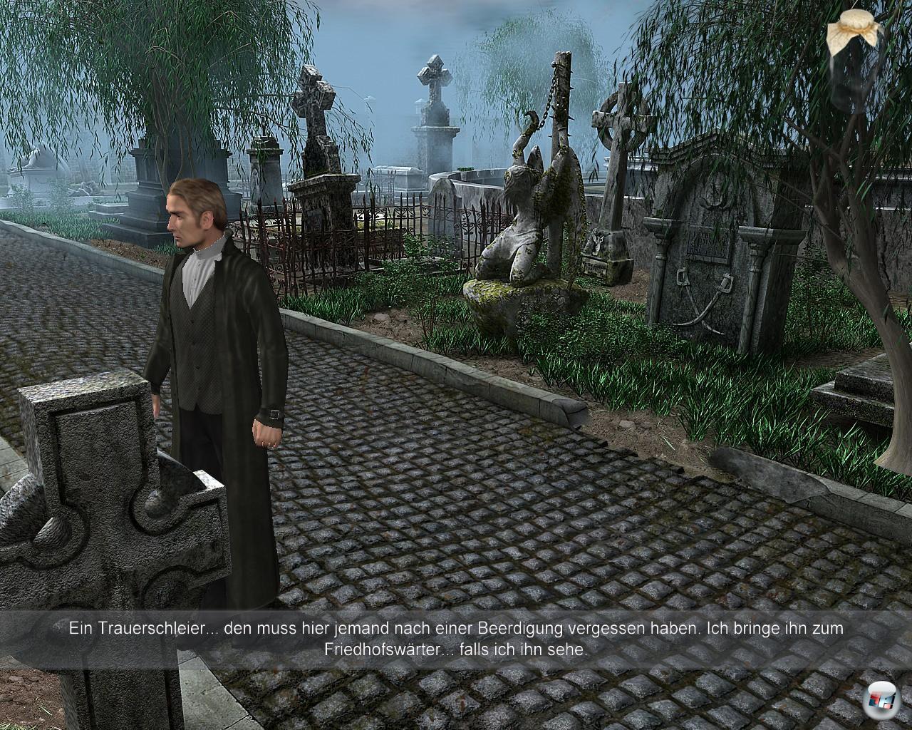 | Trotz finsterer Grundstimmung schafft das Adventure kein Gefühl der Bedrohung. Selbst auf dem Gottesacker packt euch nicht das Grausen. |