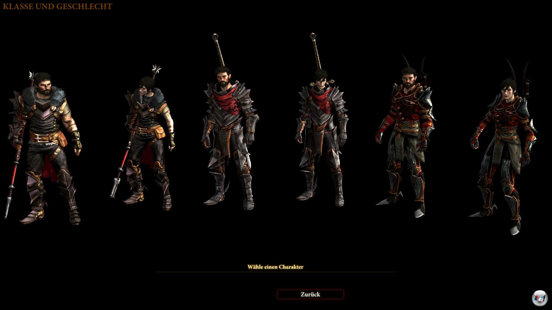 | Die Charaktererschaffung: Schurke, Krieger und Magier stehen in männlicher und weiblicher Variante zur Wahl. |
