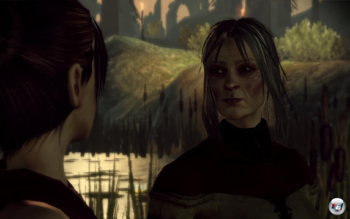 Natürlich kann man den Tempel auch ganz anders betreten, mit religiösem Respekt und man kann sogar halbnackt durch das schützende Feuer schreiten, um die Gunst der Götter zu gewinnen – wer das tut, wird sogar vom Wächter es Ortes gesalbt. Moral ist hier relativ, zumal es in der Story um das Schicksal der Welt geht. BioWare nennt sein System der Entscheidungen flapsig „Choice 2.0“ und betonte, dass man seine Rolle ganz individuell ausleben soll. Und das ist herrlich. Es gibt also keine Fantasy-Correctness in diesem Abenteuer, es geht hart und brutal zur Sache – im Kampf und in den Konsequenzen.