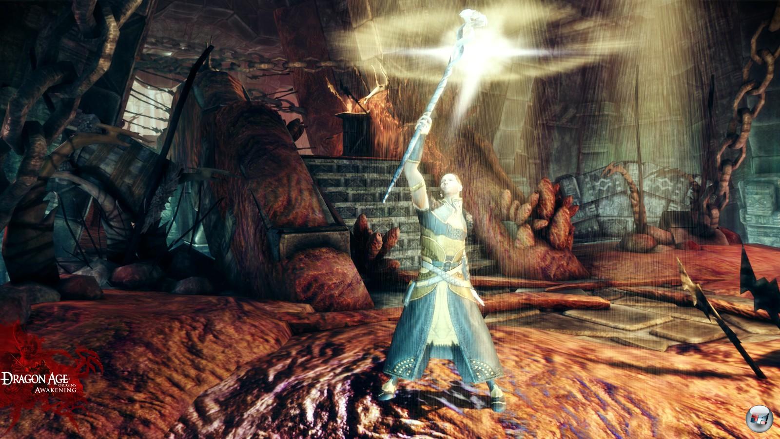BioWare verändert zwar nichts an der Spielmechanik, aber sie bleiben ihrem epischen Anspruch treu und holen richtig weit aus, um die Geschichte von Ferelden mit einem Epilog von knapp 15 bis 20 Stunden weiter zu erzählen – je nach Spielweise kann man da ein paar Stunden abziehen; vor allem, wenn man einen starken Charakter importiert. Zu Beginn wird erstmals die Neugier geweckt, als man einer sprechenden Kreatur der Dunklen Brut begegnet: Dieser so genannte „Verzehrte“ ist zwar fast genau so hässlich wie seine gutturalen Brüder, aber er scheint tatsächlich intelligent zu sein – man fühlt sich fast ein wenig an die Turianer aus Mass Effect <a class="DYNLINK" onmouseover="DynToolTipp_Show('Klicken für Gameinfos‚)“ onmouseout=“DynToolTipp_Hide(); “ href=“javascript:DynCont_Display(‚Gamefinder‘,’runmod.php?sid=%7BSID%7D&LAYOUT=dyncont_gf&spielid=15768′)“> erinnert. Und noch etwas ist seltsam: Er und all seine Schergen müssen gewusst haben, dass sich in der Festung auch Graue Wächter aufhalten. Warum hat man sie dann angegriffen? Wie kam man überhaupt hinein?