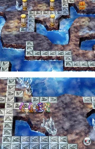 Die Menüführung hätte ebenfalls wesentlich besser gelöst werden können. Viele zentrale Punkte sind völlig unnötig, da man sie auch mit einem einfachen Tastendruck direkt im Spiel auslösen kann, während andere wichtige Optionen in Untermenüs versteckt wurden. Auch das komplette Ignorieren des Touchsrceens fällt eher negativ auf, da manche Funktionen dadurch wesentlich flotter und komfortabler zu bewältigen gewesen wären. Dafür weiß die Verwendung des Dualscreens zu gefallen. In Dungeons und Städten wird die Spielwelt auf beiden Bildschirmen dargestellt und lässt sich meistens sogar frei rotieren, was nicht nur ungemein praktisch und übersichtlich ist, sondern von seltenen, aber teils herben Slowdowns abgesehen auch noch richtig gut aussieht. Auf der Oberwelt und in Städten dient der zweite Bildschirm hingegen als hilfreiche Gesamtkarte, die sich auf Knopfdruck sogar vergrößern lässt. Bei Kämpfen wird der zweite Bildschirm als Status- und Aktionsübersicht genutzt und auch beim Aufrufen von Menüs werden die Inhalte meist übersichtlich gesplittet – eine angenehm durchdachte Sache.
