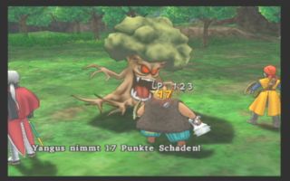Dass ihr das gesamte Spiel über mit Jessica, Yangus, Angelo und dem selbstbenannten Helden nur vier Charaktere steuern dürft, wirkt dagegen geradezu minimalistisch. Allerdings sind die Charaktere so wesentlich stärker in die Story integriert und wachsen euch unter Umständen um so mehr ans Herz. Fans von Spielen wie Suikoden, wo ihr eure Party aus über hundert Figuren rekrutieren dürft, könnten jedoch etwas enttäuscht sein, in ständig gleicher Besetzung in die Schlacht zu ziehen. Auch Rätselfreunde werden sich etwas vernachlässigt fühlen, da Denkaufgaben eher Seltenheitswert haben und sich quasi auf simple Schiebe-, Wegfindungs- und Schlüsselrätsel beschränken. Vermisst habe ich auch einen 60Hz-Modus, der das störende Stottern der Bildrate bei zügigen Kameraschwenks vermutlich reduziert hätte. Ansonsten fiel die PAL-Anpassung für Square-Verhältnisse jedoch sehr positiv aus – fette PAL-Balken und spürbare Geschwindigkeitseinbußen gibt es nämlich keine.