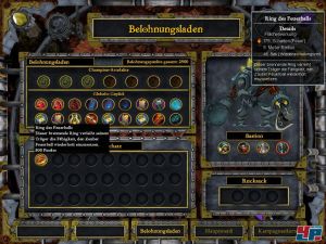 | Vor jeder Mission könnt ihr für euren Champion Ausrüstung einkaufen bzw. Items verkaufen. Im Spiel selbst gibt es keine Läden. |