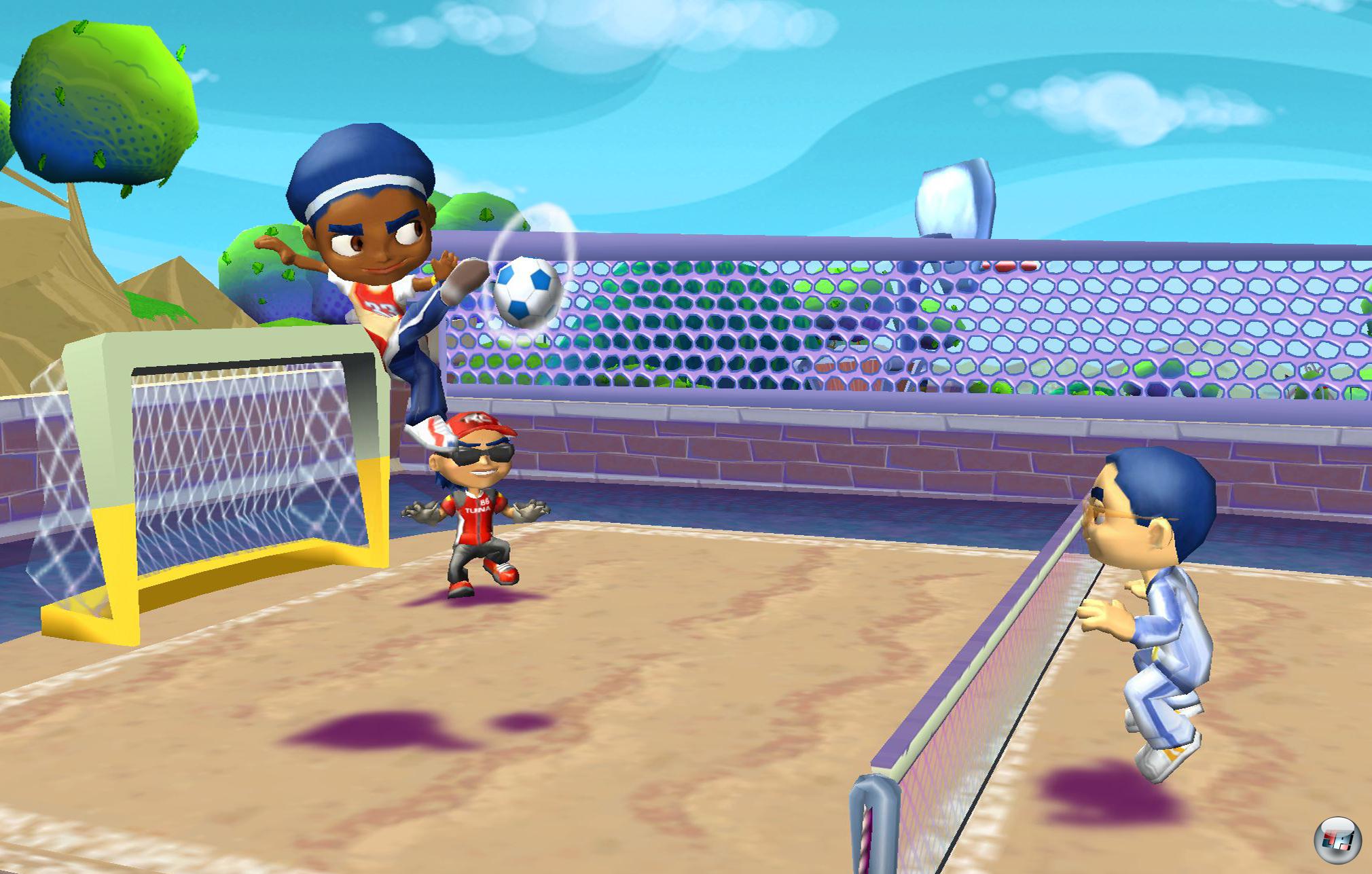 Ihr startet eure Suche nach Spiel und Spaß auf dem Schulhof, den ihr auf dem DS in 2D erkundet, während ihr auf Wii mit einer hakeligen Digikreuz-Steuerung durch bunte 3D-Welten marschiert. Später öffnet ihr noch die Pforten zum Stadion und Baumhaus, wo weitere Kids und Herausforderungen auf euch warten. Die Wii-Version bietet mit dem weitläufigen Park zusätzlich eine weitere Kulisse, die euch als DS-Spieler vorenthalten wird. Auf euren Erkundungstouren trefft ihr immer wieder auf Kinder, die euch zu einem kleinen Spiel einladen wollen. Da gilt es z.B. auf dem DS bei „Himmel und Hölle“ im Stil von Parappa the Rapper kurze Musikabschnitte taktgenau nachzuahmen, beim Basketball die meisten Punkte bei Freiwürfen abzusahnen, durch das Pusten ins Mikrofon andere Spielgefährten mit Papierkügelchen zu beschießen oder beim Trampolinspringen die meisten Luftballons zerplatzen zu lassen. Mit der Wii-Remote dirigiert ihr dagegen Papierflieger vorbei an fiesen Hindernissen, versucht beim Dart ein Bullseye zu landen oder bei einer Mischung aus Volleyball und Fußball das runde Leder im gegnerischen Netz zu versenken. Es ist schön, dass die Entwickler die Spielkonzepte an die jeweilige Plattform angepasst und sich viele exklusive Disziplinen einfallen gelassen haben. Und selbst wenn die Minispiele identisch sind, geht man auf Wii und DS verschiedene Wege, so z.B. beim Autorennen: Während ihr auf dem Handheld die kleinen Flitzer ähnlich dem Amiga-Klassiker Supercars aus der Vogelperspektive steuert und euren Gegnern das Leben mit fiesen Extras schwer macht, erinnern die 3D-Fahrten auf Wii eher an eine Carrea-Bahn, bei der ihr mittels Neigungen der Remote lediglich die Fahrspuren wechselt, aber die Karren nicht selbst lenkt. Die beliebten Power-Ups kommen hier aber genau so zum Einsatz wie förderliche Beschleunigungs- und hinderliche Bremsstreifen auf der Strecke.