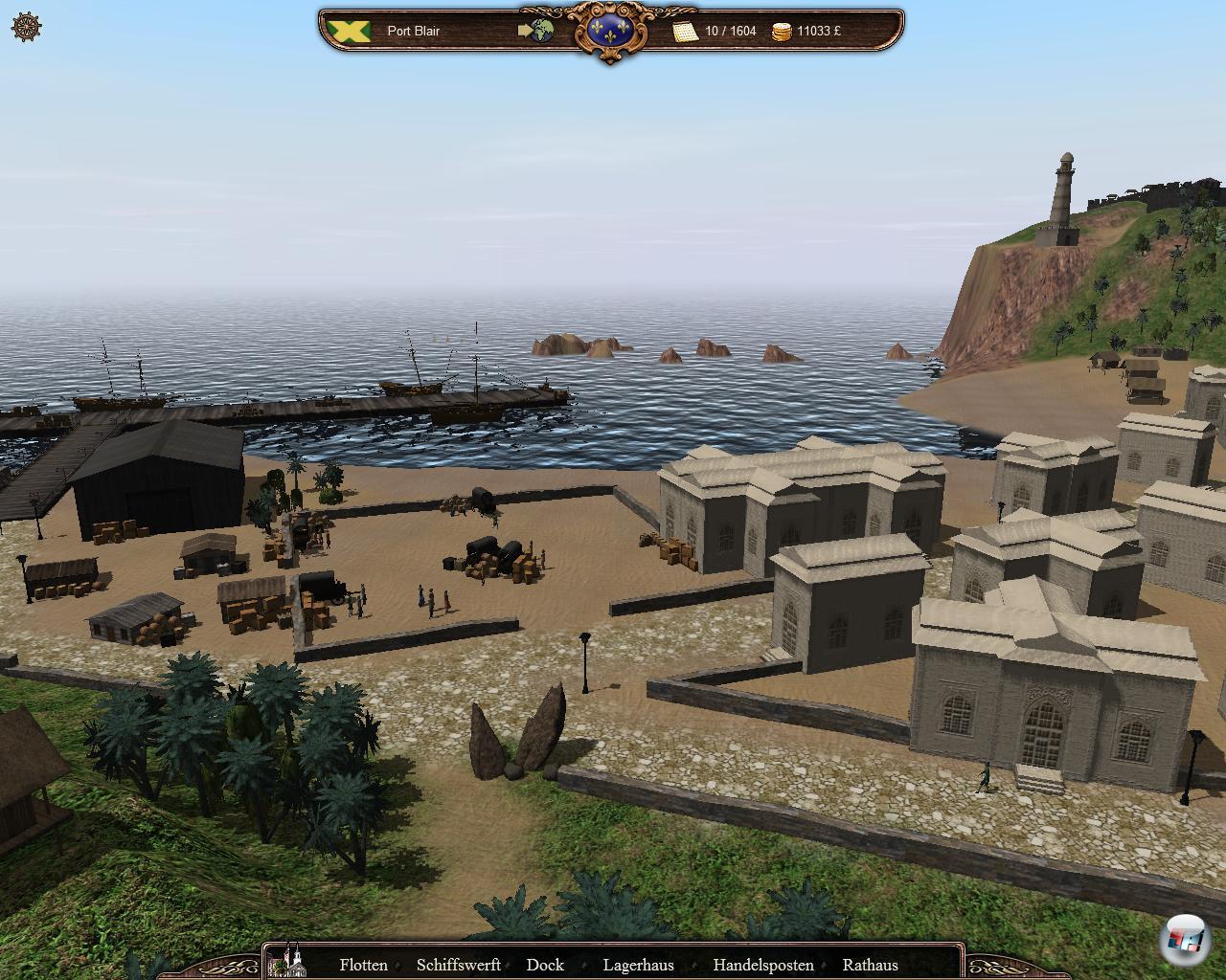 wird enttäuscht sein. Denn obwohl man Häfen erobern und ausbauen kann, verändert sich der Charakter des Spiels kaum. Auch nach einigen Jahrzehnten schippert man immer noch dieselben Sachen über dieselben Seerouten. Obwohl man fleißig Handelsplätze, Docks oder Festungen baut, ändert sich doch recht wenig. Es gibt nur wenige Bauoptionen und einzig echte Neuerung ist die Größe der Schiffe.