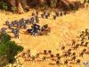 Ebenso zusammengestrichen wurden die Fraktionen, doch zumindest in diesem Belang kann Empire Earth III etwas Boden gutmachen, da drei unterschiedliche Parteien aufs Schlachtfeld ziehen, sprich „Der Westen“, „Mittlerer Osten“ und „Fernost“. Der „Westen“ mag wenige, teure Einheiten mit High-Tech-Schnickschnack, während der Ferne Osten günstige Truppenmassen favorisiert und der Mittlere Osten mit mobilen Gebäuden und flotter Kavallerie daherkommt. Je weiter die technologische Entwicklung fortschreitet, umso stärker klaffen die Fraktionen auseinander: Kampfroboter verstärken den Westen und Mutanten zeigen sich im Fernen Osten. Kurzum: Im Westen verschanzt man sich und baut dicke (Luft-)Einheiten, als Kommandeur im Fernen Osten schickt man haufenweise Leute an die Front und der mittlere Osten setzt auf aggressives Hit&Run (Tarnung) und kann seine Basen verpflanzen. Die Balance der Streithähne ist mittelprächtig gelungen (Artillerie zu schwach) und gehört daher verbessert, genau wie der „Humor“. Richtig gelesen, die Einheiten geben „witzige“ und unpassende Kommentare beim Auswählen ab, die absolut nicht in das Szenario passen. So sinniert der debile Baumeister mit Phrasen wie „Ich, Baumeister!“ über nicht vorhandene künstliche Intelligenz, der Speerkämpfer „treibt es gerne auf die Spitze“ und der Ingenieur kommt eigentlich aus der Abfallverwertung. Ha Ha Ha! Welch ein Spaß… Wenn die Entwickler schon den Comic-Stil von WarCraft III entliehen haben, hätten sie auch merken sollen, dass die „lustigen“ Kommentare erst dann kommen, wenn man öfters auf die Leute klickt und nicht permanent. Schließlich sind die Sprüche bei der zehnten Wiederholung allerhöchstens nervend.