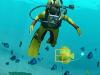 Nachdem mich der Chef der Tauchstation seiner Enkeltochter Oceane vorgestellt hat, geht es endlich zum ersten Check Dive. Man möchte offenbar meine Fähigkeiten als Taucher „ausloten“. Cheffe selbst darf aufgrund einer nicht ausgeheilten Dekompressionskrankheit nicht mehr tauchen, daher fungiert Oceane als mein „Buddy“ – wie in der Realität ist man also nicht alleine unterwegs. Also  geht’s ab in das azurblaue Wasser der Lagune. Und hier kann das Spiel dann auch das erste
