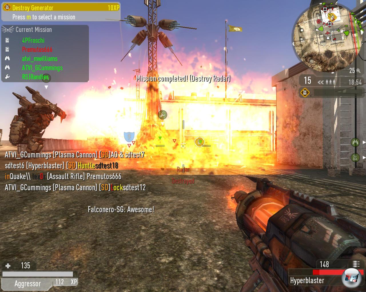 Warum diese negative Einleitung? Ist es nicht schön, wenn sich Entwickler bemühen, die Grenzen zwischen Shooterlagern zu verwischen? Natürlich ist das prinzipiell eine gute Sache, aber diese Grenzen gibt es nicht ohne Grund: Quake ist rasant, Quake ist Deathmatch, Quake ist schneller Frag. Battlefield ist langsam, Battlefield ist Teamplay, Battlefield ist koordiniertes Vorgehen. Natürlich gibt es Überlappungen, allerdings ist die Kombination »Teambasiertes Missionsdesign« plus »Ratzfatz-Gefechte« nicht ohne Weiteres unter einen Hut zu bekommen. Und dabei rede ich noch nicht einmal von öffentlichen Servern, auf denen sich grundsätzlich nur Geisteskranke herumtreiben, die dem Begriff »Teamwork« ähnlich viel Aufmerksamkeit widmen wie »Dichlordiphenyltrichlorethan«. Auch in einer eingespielten Gruppe ist es ärgerlich, wenn man versucht, als Team vorzugehen, und dann doch basisdemokratisch Opfer eines Nailgun-Angriffs wird, der aus dem Nichts kam – denn Frag-Feedback, bei dem der Todesschütze gezeigt wird, eigentlich schon seit einiger Zeit ein weit verbreiteter Luxus, gibt es in Quake Wars (QW) nicht.