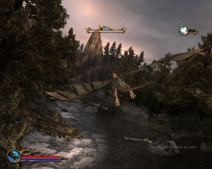 | Auf Sephiras Rücken dreht ihr vorgeschriebene Bahnen, und nehmt Feinde per Bogen oder Drachenodem aufs Korn. |