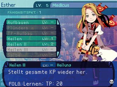 | Nach jedem Aufstieg kann man einen Punkt verteilen: Aber was soll man bloß verbessern? Diese Medicus-Lady kann sich in verschiedene Richtungen entwickeln. |