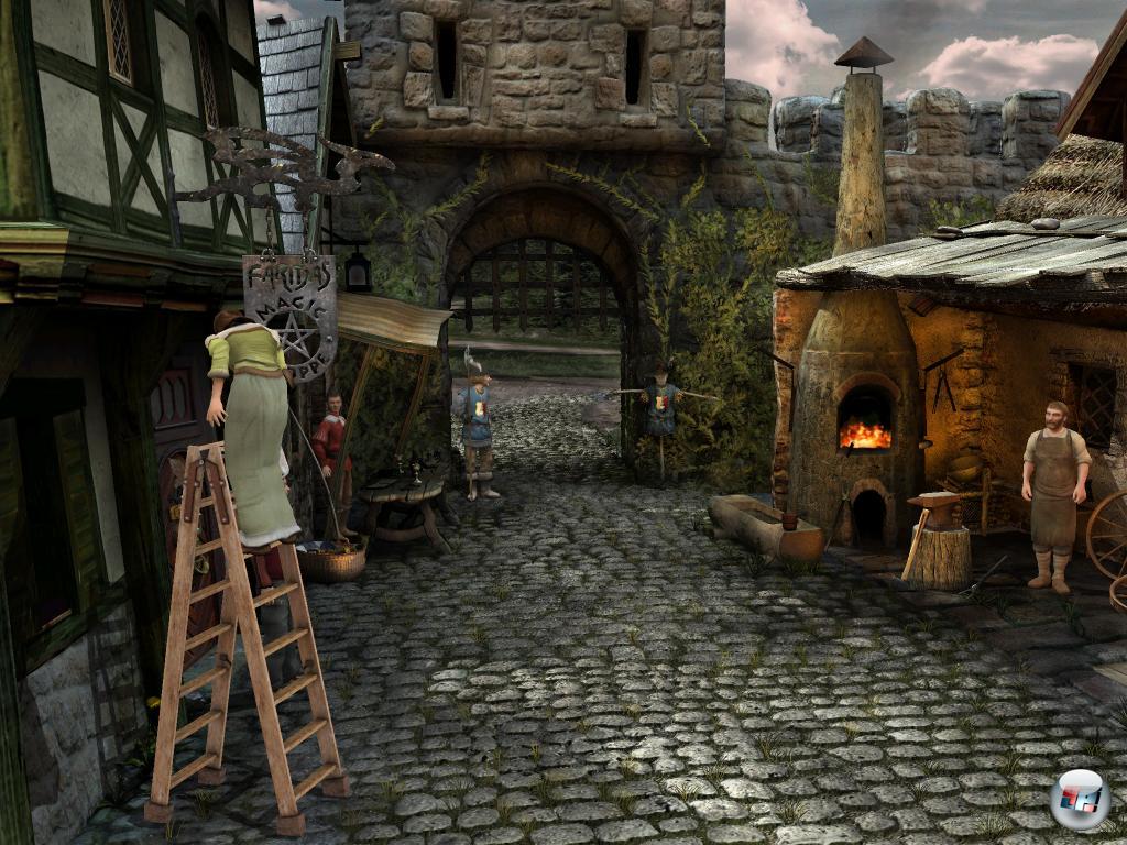 Seltsam: Ist das jetzt Simon the Sorcerer 5 oder gar ein eigenständiges Spiel von Silver Style? Diese Frage kann man sich durchaus stellen, wenn man unter Jahrmarktklängen durch die Gassen der mittelalterlichen Postkartenidylle streift. Derselbe putzige Grafikstil wie bei Simon 4 legt die Vermutung nahe, dass es eine Art von Fortsetzung
