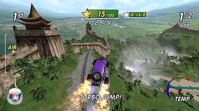 Dementsprechend verzichtet man auf jeden Simulationsanspruch und versucht, eine reine Remote-Steuerung in Einklang mit einer blitzschnellen Grafikengine sowie fantastastischen Sprüngen jenseits der Vorstellungskraft zu bringen, um die Stärken, die sich hinter dem Begriff „Arcade-Racer“ verbergen, voll zur Geltung zu bringen.