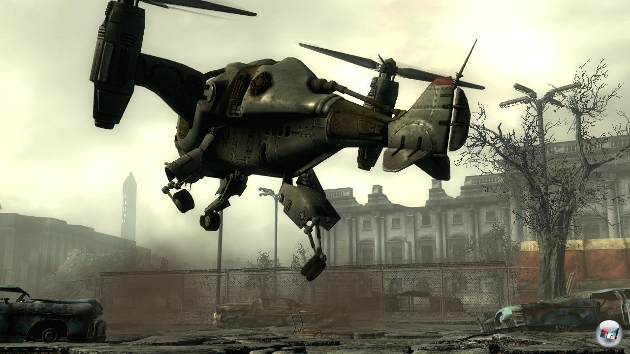 Erst auf den zweiten Blick kann Fallout 3 auf allen System auch grafisch punkten – und zwar mit seiner Architektur, seinem Licht und seiner Monumentalität. Bethesda fängt das zerstörte Washington nicht nur mit seinen teilweise begehbaren baulichen Merkmalen wie dem Kapitol oder dem Washington Monument ein, sondern fügt mächtige Statuen und fiktive Gebäude hinzu. Und selbst wenn keine optischen Reize à la Crysis: Warhead an der Texturoberfläche oder in der im Vergleich zu Mass Effect hoffnunglos veralteten Gesichtsmimik entstehen, kann Bethesda mit seinem Tagnachtwechsel sowie den daraus resultierenden Lichtspielen für eine idyllische Atmosphäre sorgen, die man auch aus STALKER kennt.