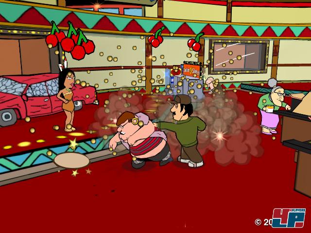Im übrigen Spielverlauf wird ebenfalls kein Klischee oder Tabuthema ausgelassen: Fäkalhumor, sexuelle Anspielungen und Rollstuhlfahrerwitze inklusive. Nicht ohne Grund wurde der Titel im prüden Amerika mit einem „M“ für Mature eingestuft. Allerdings ist immer eine gewisse Portion Augenzwinkern im Spiel. Außerdem nimmt das Spiel sich immer wieder selbst auf den Arm. „Damn, i hate these invisible Walls“, beschwert sich Peter, als er auf eine unsichtbare Wand trifft, an der sich ein Pantomime entlang tastet. Außerdem werden diverse Spielhallenklassiker durch den Kakao gezogen. In Stewies Abschnitten bewegen sich die Spritzen schleudernden Krankenschwestern in Angriffswellen auf euch zu. Eine Lautsprecherdurchsage mahnt das angreifende Personal, Formation und Geschwindigkeit einzuhalten: „Please remember to keep up your intervals“.