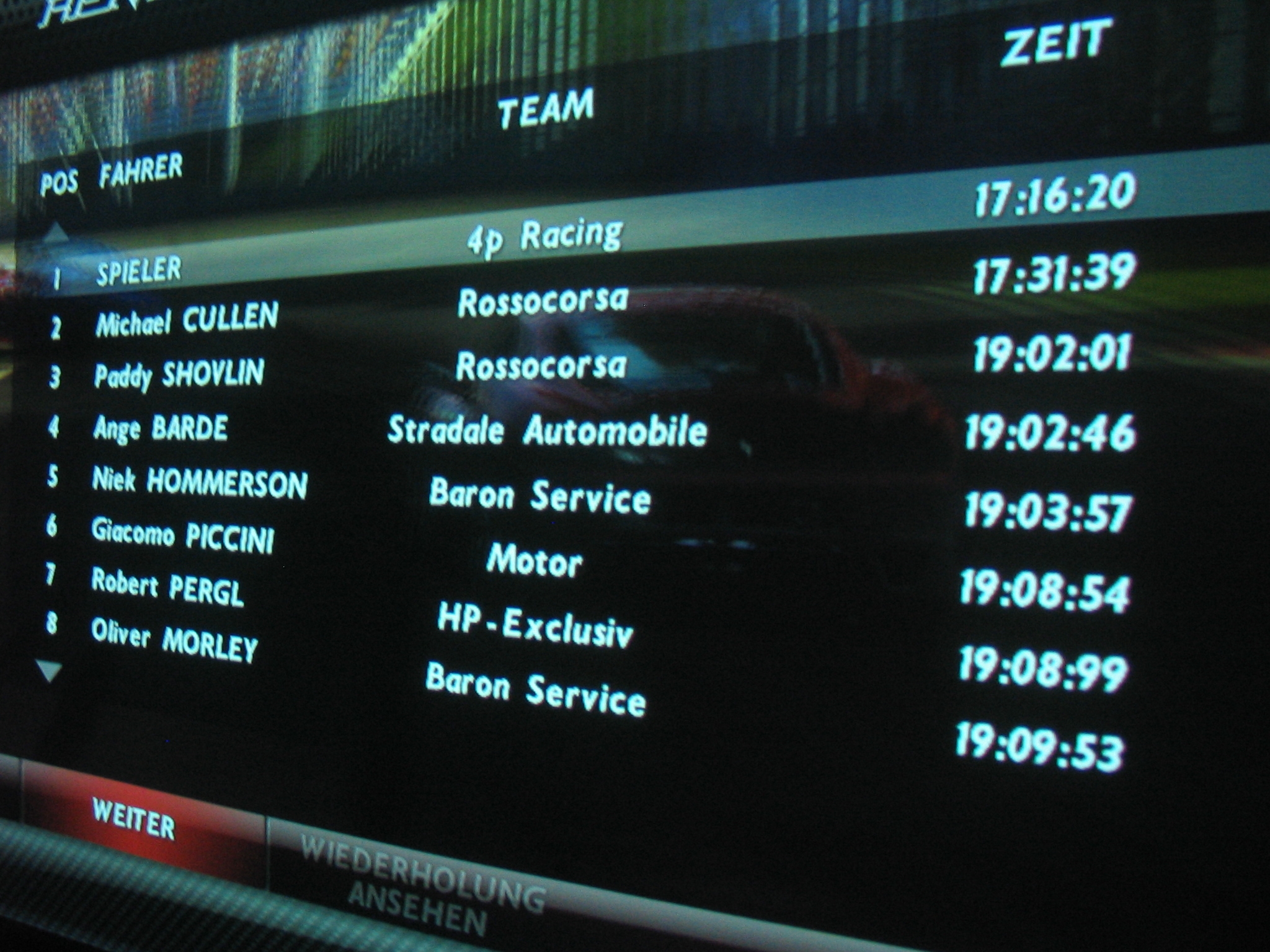 Der Onlinemodus von Ferrari Challenge ist etwas ganz Besonderes. Nicht etwa, weil er euch zig Optionen und ein lagfreies Rennvergnügen beschert, sondern weil er einfach ganz besonders schei…benkleisterig ist! Sorry für die Wortwahl, aber etwas anderes fällt mir nicht ein, wenn ich zu Hause ungelogen über 30 verdammte Versuche gestartet hab, entweder in eine Online-Session einzusteigen oder selbst ein funktionierendes Spiel zu eröffnen. Ben ging es übrigens genau so, nur hat er bereits nach der 20er-Marke verzweifelt aufgegeben. Trotzdem haben wir es zumindest einmal geschafft, per Verabredung ein gemeinsames Rennen zu starten – natürlich nur in einer öffentlichen Lobby, denn das Anlegen privater Sessions ist nicht möglich. Und tatsächlich – es ging! Allerdings nur etwa eine Minute lang, denn danach ist Ben rausgeflogen – wie auch einige internationale Mitspieler, die ebenfalls kurzzeitig in ein Rennen einsteigen konnten. Ich selbst hab es übrigens bis heute nicht geschafft, mit meiner PS3 (NAT 2 und DSL 10000+ übrigens!) in ein offenes Spiel einzusteigen. Bei der Lobby ist immer Schluss, in der man keinerlei Informationen bekommt, wie weit der aktuelle Rennverlauf schon fortgeschritten ist und welcher Spieler an welcher Position liegt. Mit einem plötzlichen Verbindungsabbruch und dem anschließenden Rausschmiss aus der Lobby kann man ja notgedrungen noch leben. Wenn sich aber die ganze Konsole aufhängt und selbst der PS-Button keine Rettung mehr bringt, muss irgendwas gewaltig faul sein. Was hat Eutechnyx denn da für einen Dreck fabriziert? Unsere Redaktions-PS zeigte sich mit optimalen Leitungsverbindungen offener für Online-Sessions und es war (vielleicht auch bedingt durch die Uhrzeit) möglich, sich einer Session anzuschließen. Die anfängliche Freude wich aber auch hier schnell der Ernüchterung: Selbst bei zwei Fahrern, beide aus Deutschland, war ein reibungsloser Ablauf durch die teils extrem krassen Lags nicht möglich. Hinzu kommt, dass über den Wagen bei Onlinerennen die Netzwerknamen der jeweiligen Teilnehmer in einer Art Comic-Sprechblase angezeigt werden, die die Sicht ziemlich stört. Wenn mich das schon bei einem Mitspieler nervt, will ich gar nicht wissen, was mit maximal 16 Fahrern in einem engen Fahrerfeld auf dem Bildschirm abgeht. Sieht man dann überhaupt noch was von der Strecke?
