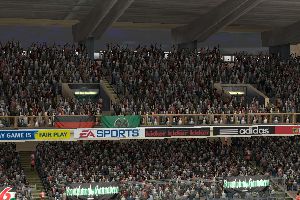 Apropos Akustik: Dieses Jahr sind die Kommentare einfach verdammt schlecht – selbst PES4 ist eine Klasse besser. Nicht unbedingt, was die Aussprache oder Emotionen angeht, sondern das Timing. Okay, man kann Kommentare abschalten, aber sie prägen die Kulisse und sind vor allem für die Karriere im Einzelspielermodus wichtig, denn sie geben Feedback. Das, was das Duo Patrick Wasserzieher und Thomas Hermann da abliefert, ist peinlich: Da ist von „einem Schuss aus 30 Metern“ die Rede, als man gerade im Strafraum zu einem Schlenzer ansetzt. Da wird von „Querpässen“ gesprochen, obwohl es sich eindeutig um Flanken handelt. Da heißt es plötzlich „Das ist ja wie im richtigen Fußball“ – kann man die Illusion einer realistischen Spielwelt besser zerstören? Und den Vogel schießen die beiden im Manager-Modus ab: Ich spiele gegen den Tabellenführer. Ich gewinne. Mein Neuzugang schießt drei Tore. Und wie lautet die Analyse? Während Hermann meine Leistung bejubelt, erzählt Wasserzieher etwas von einer Enttäuschung und davon, dass ich meine Neuzugänge nicht richtig integriert hätte – arggh! Diese sprachlichen Flachpässe rauben FIFA 06 vor allem für Einzelspieler, die Fußball mit all seinem Zauber aufsaugen wollen, sehr viel Atmosphäre.