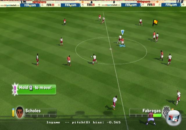 | Mit der neuen Point’n’Click-Steuerung dirigiert ihr die Akteure passiv über den Rasen. Hier hat sich EA merklich von Konamis Wii-PES-Auftritt inspirieren lassen… |