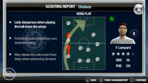 im Netz landen, doch insgesamt fühlen sich die Partien so an wie in FIFA 09, die sich ihrerseits schon so angefühlt haben wie in FIFA 08. Folglich wirkt die Ballphysik mittlerweile veraltet und das runde Leder immer noch zu leicht. Und auch wenn die Spieler-KI insgesamt einen guten Eindruck hinterlässt, gibt es manchmal auch Totalaussetzer, bei denen der Torwart des Gegners in brenzligen Situationen auch schon mal unerwartet an der Eckfahne herum turnt. Die Steuerung wurde 1:1 vom Vorgänger übernommen und bietet bekannte Finessen wie First Touch bei der Ballannahme, Täuschungen und die Möglichkeit, Schüsse anzuschneiden. Heber, Flanken und Doppelpässe finden sich selbstverständlich auch im Repertoire, wobei man für einen gehobenen Anspruch Schussstärke und Richtung komplett manuell durchführen kann. Umgekehrt dürfen Gelegenheitsspieler auf eine vereinfachte Steuerung umschalten, bei der sie sich nur um das Passen, Schießen und eventuell Grätschen kümmern müssen – die Laufarbeit wird automatisch von der KI übernommen. Ein altes Problem aber bleibt: Vor allem beim Sprint legen sich die Spieler den Ball viel zu weit nach vorne und auch bei niedrigem Tempo fällt es schwer, ihn präzise vor den Angreifern abzuschirmen. So stehen schnelle Ballverluste an der Tagesordnung und die Defensive scheint leicht bevorteilt zu sein. Positiver Nebeneffekt: Zusammen mit der überarbeiteten Torwart-KI fallen nicht mehr so viele Tore wie früher. Eine kleine, aber sinnvolle Neuerung sind die Scout-Berichte, die schon vor dem Spiel über die taktischen Gewohnheiten und die Schlüsselspieler des gegnerischen Teams informieren. So kann man sich prima auf die Begegnung einstellen und dabei auch mit den ebenfalls neuen Teamstilen experimentieren. Je nach gewählter Aufstellung forciert man z.B. eine Überzahl im 16er oder an den Flügeln, spielt auf Abseitsfalle oder schwenkt von der Mann- auf eine Raumdeckung um. Obwohl manche der verfügbaren Teamstile selbsterklärend sind, wären zusätzliche Beschreibungen nicht schlecht gewesen, welche Folgen die entsprechende Wahl nach sich zieht. Taktiken wie „Vollblutkicker“ oder „Die Lücke“ werfen einige Fragen auf, die auch das Handbuch nicht beantworten kann… Diese bekommt man eher zufällig, wenn auch der Gegner von ihnen Gebrauch macht und der Talent-Scout die Formation anhand eines animierten Schaubilds darstellt.![]()
