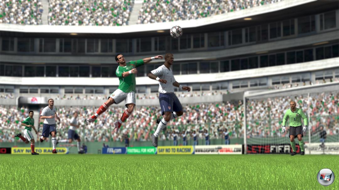 Argentinien kann die scharf herein getretene Ecke auf Ballack jedenfalls nicht verhindern und der Profi des FC Chelsea trifft das Leder mit der Stirn: Es segelt allerdings relativ harmlos Richtung Tor. Was ist da los? Hier zeigt FIFA 10 noch eine Schwäche, denn die Ballphysik hinterlässt trotz der Tatsache, dass sie bei Schüssen etwas schwerer wirkt, noch immer keinen krachenden Eindruck – es fehlt der Wumms. Gerade bei den Kopfbällen vermisst man diese Wucht, die zwar ab und zu da ist, aber in vielen Fällen eben nicht kräftig genug inszeniert wird; das Leder „flufft“ manchmal wie ein Softball. Im direkten Vergleich wirkt PES 2010 hier einfach dramatischer, denn die Flanken kommen schärfer und der Aufprall wird besser inszeniert. FIFA 10 bietet auch hier eine Fülle an Möglichkeiten, denn man kann die Bälle auf den kurzen oder langen Pfosten schlagen, kann die Flugkurve über R1 senken, aber man hat noch Nachholbedarf, denn man vermisst diese hart und scharf in den Rücken der Abwehr gezogenen Flanken.